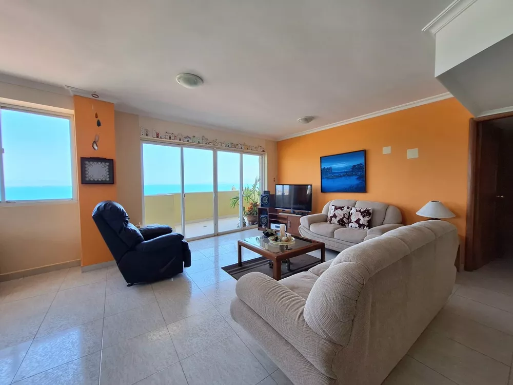 En Venta amplio y hermoso apartamento con vista al mar.Ubicado en Res. Bahía Coral Apartamento de 170mts2, Hall de entrada privado al apto, Piso 6, 1 apto por piso, Sala, Cocina Tipo Isla, con nevera, horno, microondas, fregadero doble ponchera, tope y pantalla de granito, lavadora y secadora, totalmente amoblado, Iluminación Led, Cómoda Área de Servicio, 4 habitaciones, 4 baños, Fibra Óptica, tv cable, A/A 5 ton, 1 aire tipo split de 12 mil btu, 3 puestos de estacionamiento (2 techados y 1 al sol), 2 maleteros, puertas y closets de madera macisa en romanilla en habitaciones y baños, molduras en sala y cocina, doble balcón, cerámica española, único dueño, Vista Insuperable al mar (vista a playa lido, cerro el morro, parte de plc y playa muerta) el edificio cuenta con amplio tanque subterráneo de agua, cerco eléctrico, salón de fiesta y piscina.