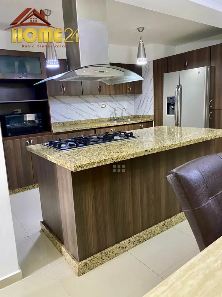 Home24 BAHIA, Bienes Raices. Ofrece en Venta, Apartamento Conjunto Residencial La Ensenada, ubicado en casco central de Lecheria cuenta con 130 mtrs2 distribuidos de la siguiente manera: Amplia cocina con tope de granito, espaciosa sala, comedor, 4 habitaciones, 3 baños, area de servicio, tanque de agua, 2 puestos de estacionamientos, 1 maletero, Amoblado y Equipado, adicional cuenta con vigilancia privada 24 horas