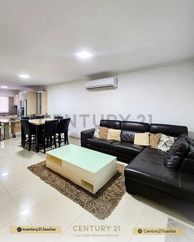 Moderna Casa de dos niveles en "Casa Bote A" el cuál posee las siguientes propiedades: 2 niveles Metraje: 220m² Totalmente amoblada y equipadaCocina con acabados de primera y electrodomésticos de alta gama. 4 habitaciones + servicio(1 hab en planta baja + la de servicio)EstudioÁrea de lavandero5 bañosPlanta eléctricaInternet y directvSistema de cámaras de seguridadPiscinaEstacionamiento: 2Puesto de muelle El conjunto ofrece: Vigilancia las 24 horas.Alquiler: 1.500$ con servicios y condominio incluidos- 1.350$ sin servicios