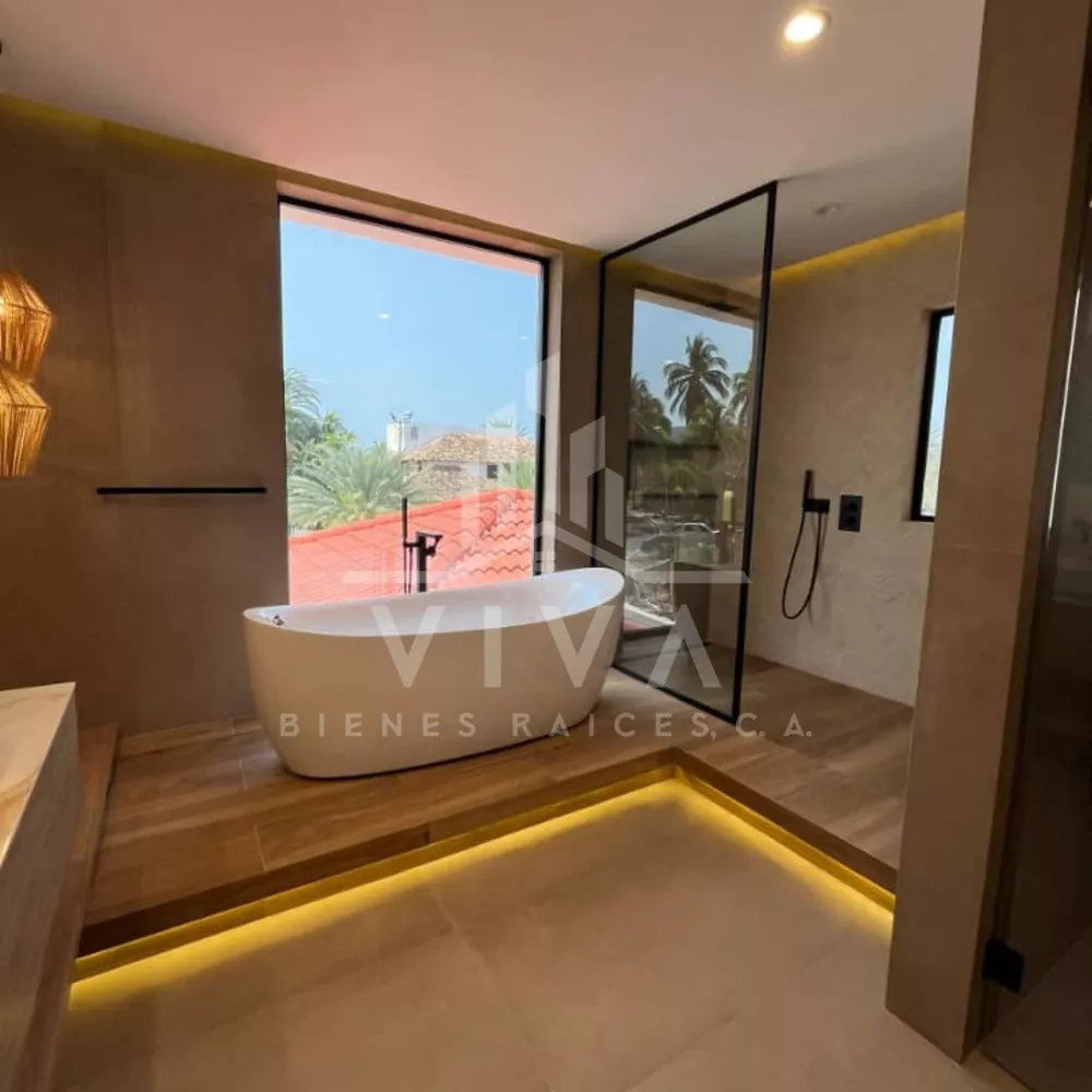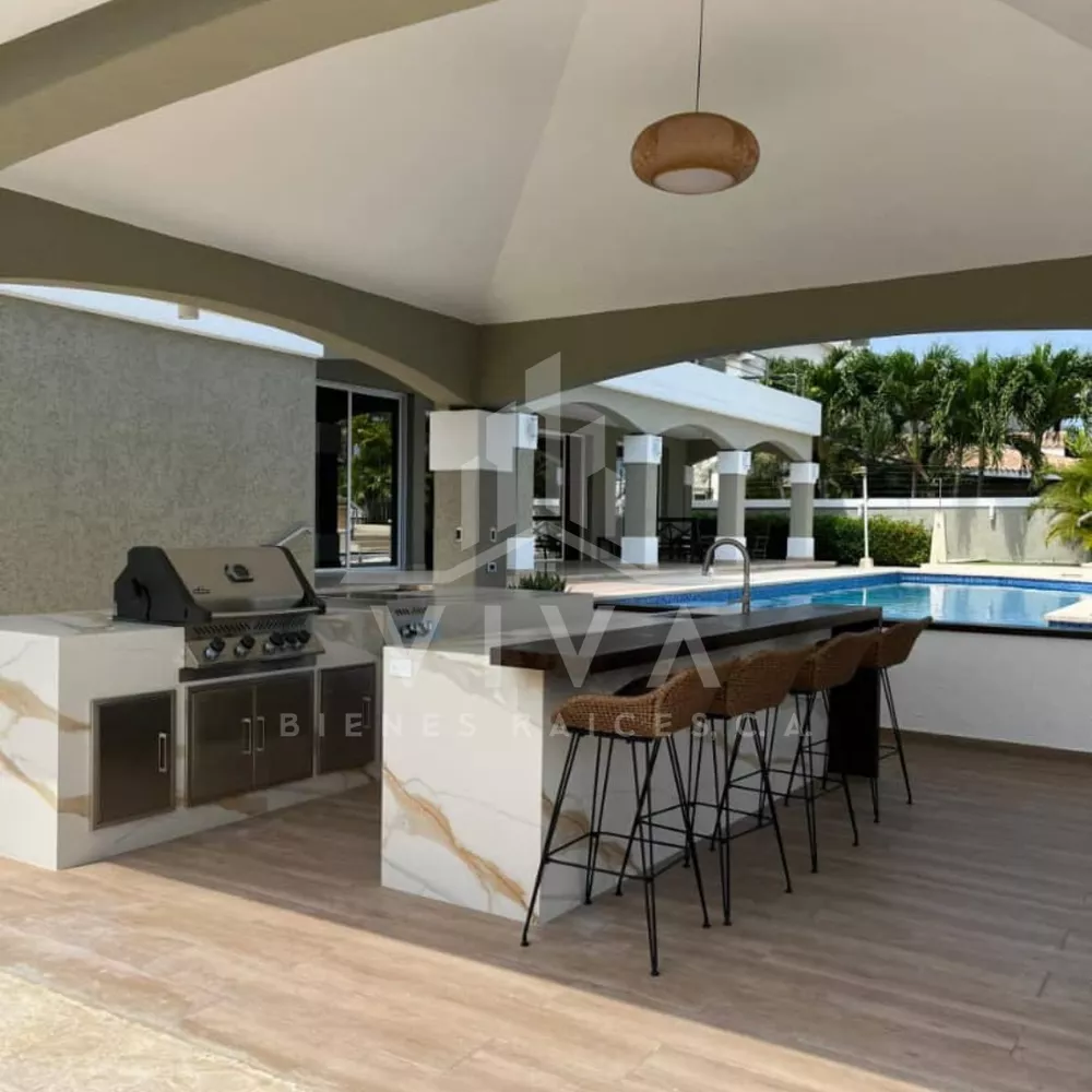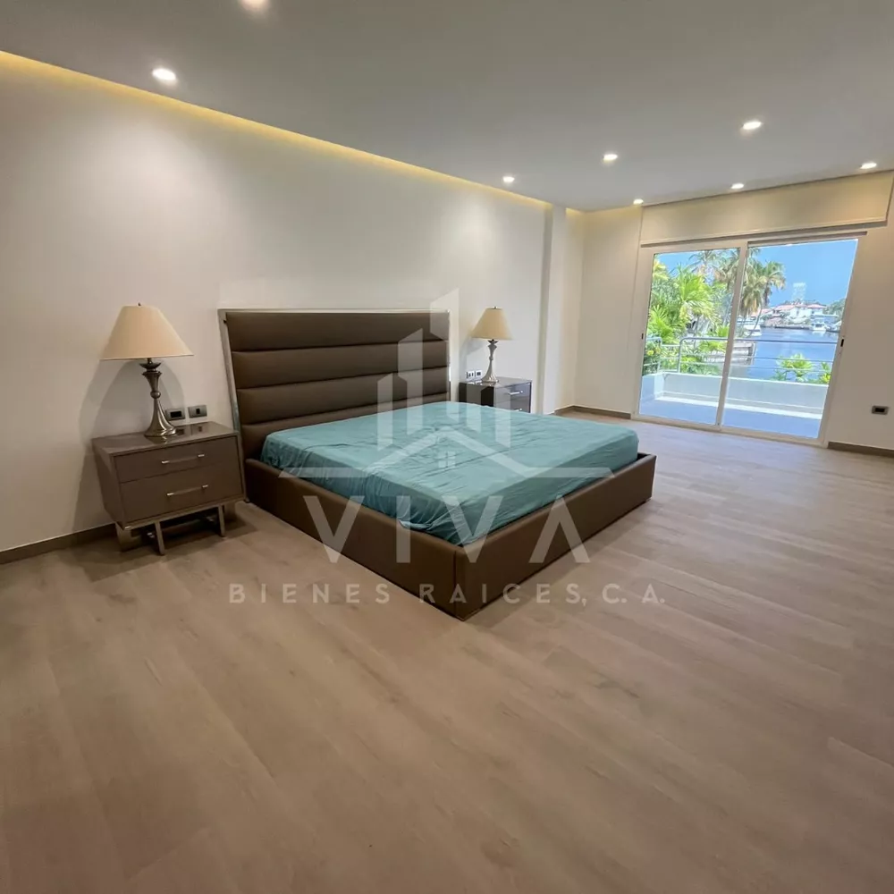 Consta de 1542m2 , 700m2 de construcción distribuido en dos niveles.Amoblada y equipada.5 Hab. con clóset, 8 baños salas de baños ( Hab. ppal. con hermosa vista al Canal)Cocina al estilo wall panel con tope de mármol, sala comedor concepto abierto.Hab. de servicio con baño, zona de lavandería.Pisos de Mármol y porcelanato italiano.Espaciosa terraza con vista al canal.Piscina climatizada con cascada y vista al canal Principal.Cocina y parrillera en el área de la piscina.Baños con duchas en el área de la piscina. Amplio Muelle 37 M, para embarcación de 100 pies.Estacionamiento para 8 vehículos.Aire Central, Planta electrica 55KVA, tanque de agua de 55.000 litros. Sistema de seguridad.