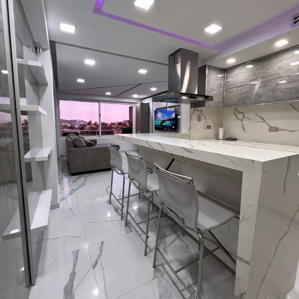 Moderno apartamento con acabados de lujo y recién remodelado en uno de los Conjuntos mas icónicos y de mejor ubicación de la ciudad de Lechería, Ubicado en el Conjunto Residencial Punta Marina, cuenta con 117 metros cuadrados, distribuidos en dos niveles con tres habitaciones y tres baños y medio, además de una cómoda terraza con vista al canal, posee una moderna cocina equipada con electrodomésticos de primera, amplia sala con vista a los canales navegables, posee área de lavandería con lavadora y secadora, un puesto de estacionamiento techado y un puesto privado para embarcación, además el conjunto cuenta con hermosa piscina y caney para realizar eventos y reuniones, vigilancia privada 24 horas, cámaras de seguridad y puestos de visitantes, además de tener una ubicación privilegiada cerca de la playa, restaurantes, gimnasios, complejos deportivos, centros comerciales y numerosas áreas recreacionales de la ciudad.